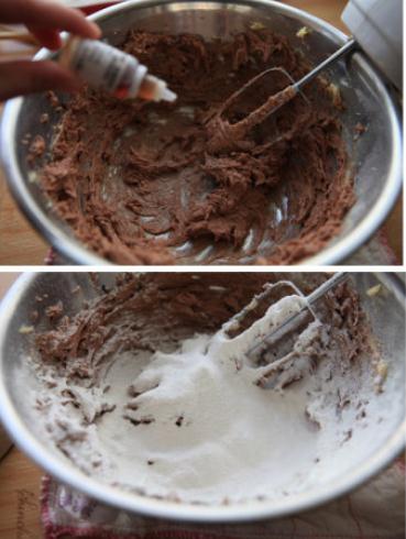 3,加入5-6滴香草精,1克鹽打勻后,分次篩入低筋面粉拌勻至無干粉,然后放入杏仁片拌勻;香香脆脆停不了口---杏仁片巧克力餅干