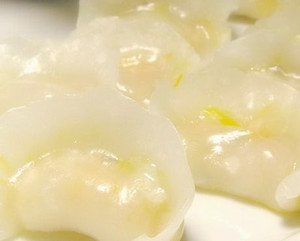 豬油1瓶茶匙,餃餡:鮮蝦仁250G,筍末70G,豬肥肉40G,鹽,麻油,料酒,姜汁(或姜末),蔥末適量,