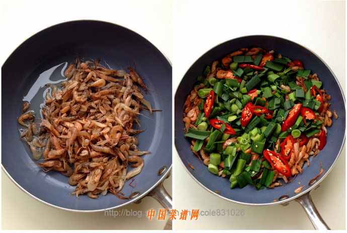 1. 鍋中放入適量油,燒熱后放入小河蝦;