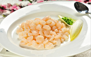 1、蝦仁洗凈去蝦線,瀝干水份,其中2/3蝦仁酌情稍切小(2~3段),用鹽、姜汁、料酒腌10分鐘;
