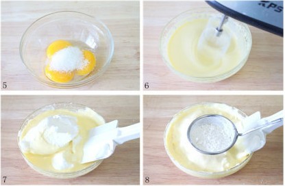 4.蛋黃里加入剩下的15克細(xì)砂糖,滴入幾滴香草精(可不要)。