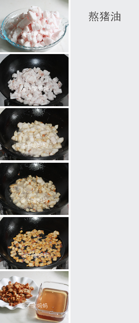 第一步:熬豬油(沒有豬油,可用其他食用油代替,但味道會(huì)欠佳)