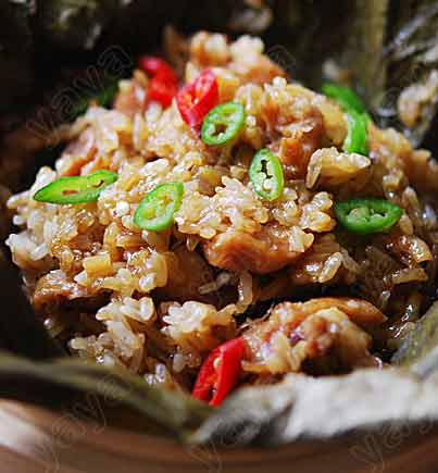 荷葉用清水泡兩小時后仔細(xì)用干凈的布擦干凈。留著備用。如果不放心衛(wèi)生問題也可以在開水里燙一下。但一定要快速,燙久了也會去掉荷葉的清香的。(如果在家,用的是新鮮的荷葉。。該是多香啊。。 )