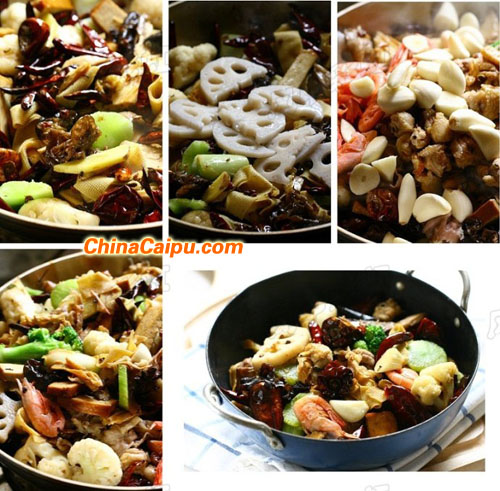 7、依次把各種處理好的食材倒入鍋中,徹底翻炒