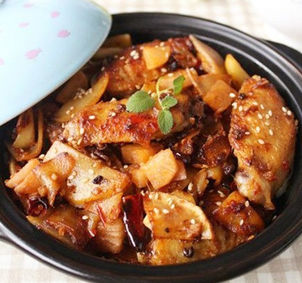 食材:500g雞翅、100g土豆、適量鹽、適量糖、適量郫縣豆瓣醬、適量辣椒、適量料酒、適量蔥、適量姜、適量蒜、適量芝麻、適量花椒