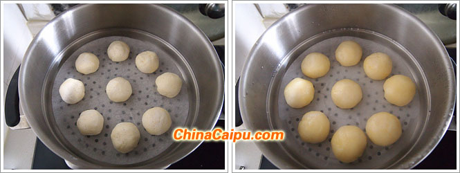 12、蓋上鍋蓋,大火蒸6.7分鐘即可,中間可以掀蓋放一次氣,以免濕氣滴落面團(tuán)表面塌陷。