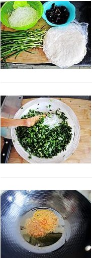 2. 韭菜洗凈切碎,再把粉絲,木耳切碎放入盆中。