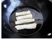 10. 鍋中油燒熱放入春卷炸制金黃焦酥即好。