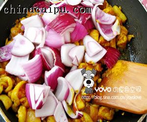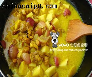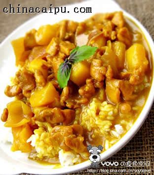 7、濃郁的咖喱澆到熱