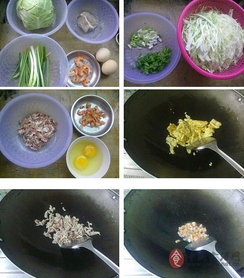 9、熱油,倒入包菜翻炒,如果太多可以分兩次炒,下鹽,盛起。
