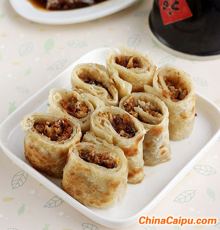 20、卷起來(lái)成一個(gè)卷,然后切成幾段就可以吃了