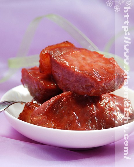 做法:肉切小塊,抹上叉燒醬,每一塊都抹勻。腌制過夜。肉放烤網(wǎng),底下放鋪錫紙的烤盤。
