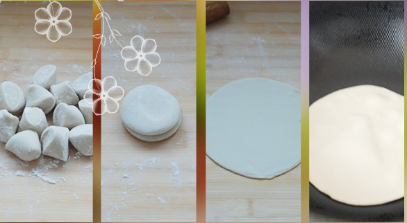 3.按扁,一塊上抹少許油,另一塊至其上,搟薄。