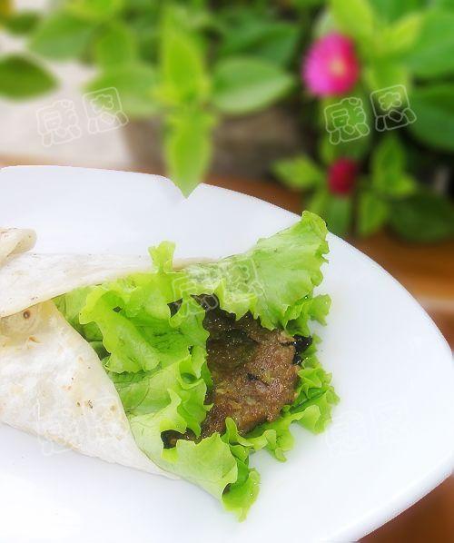 7.在生菜葉上抹上自己喜歡的醬,我用的是