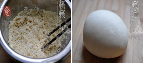 1.面粉中加入精鹽拌勻,雞蛋1只去殼磕入面粉中拌勻,將面盆放置在滴水的龍頭下用筷子將面粉攪成碎片狀;用手將面粉反復(fù)搓揉和成硬面團(tuán)(手搟面和面要和得硬些,搟出的面才夠勁道有嚼頭),面團(tuán)覆上保鮮膜餳20分鐘左右。