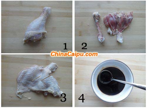 原料:雞腿3只,生抽2勺,老抽1勺,料酒2勺,蜂蜜2勺,白糖1勺,油,芝麻,蔥花