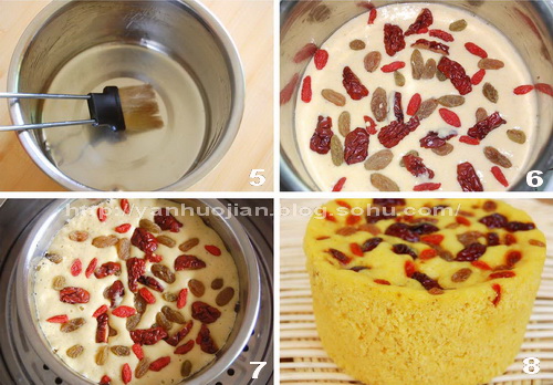 蒸煮的容器內(nèi)刷一層油,方便脫模