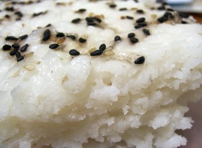 米糊出現(xiàn)顆粒狀的形態(tài)時即可.(不要加熱的太過太干,那樣發(fā)酵時不容易膨脹,口感較干較緊)