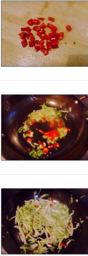 9. 倒入切好的白菜絲翻炒片刻。