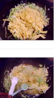 10. 再倒入用蛋液浸泡過的餅絲。