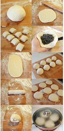 9、放入芝麻餡,以包