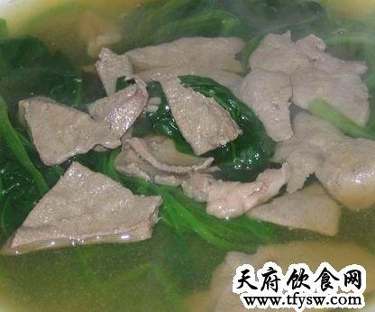 菠菜豬肝湯原料:豬肝150克,菠菜150克,