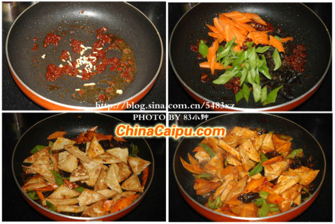 5.余油倒入豆瓣炒至出紅油。加入姜末煸香。