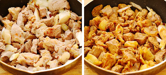10:再加入老抽,生抽翻炒均勻。