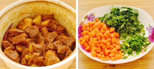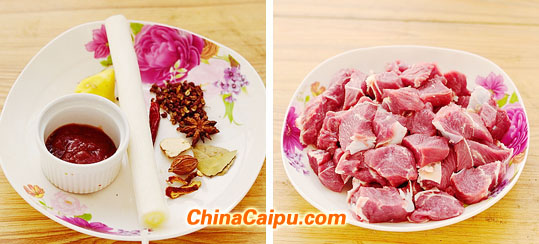 4:牛腱肉切小四方塊。