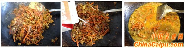 4、炒勻,加約100毫升牛奶,再加熱水至完全沒(méi)過(guò)所有