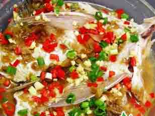4. 水燒開,將魚以大火蒸約10分鐘左右,至筷子可插入魚身;