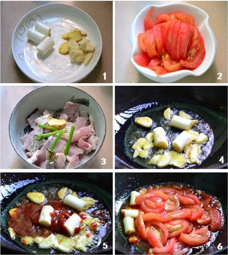 4、炒鍋放油,油熱后以中小火將生姜大蒜及大蔥段炒香。