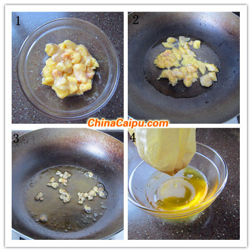 1、從肥雞腹部和皮下剔下脂肪,洗凈;