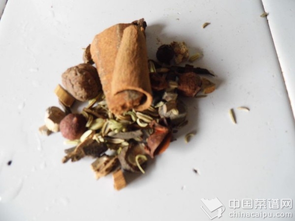 4.香料:桂皮2個(gè)、八角2個(gè)、草果3個(gè)、豆蔻3個(gè)、茴香、花椒粒、丁香