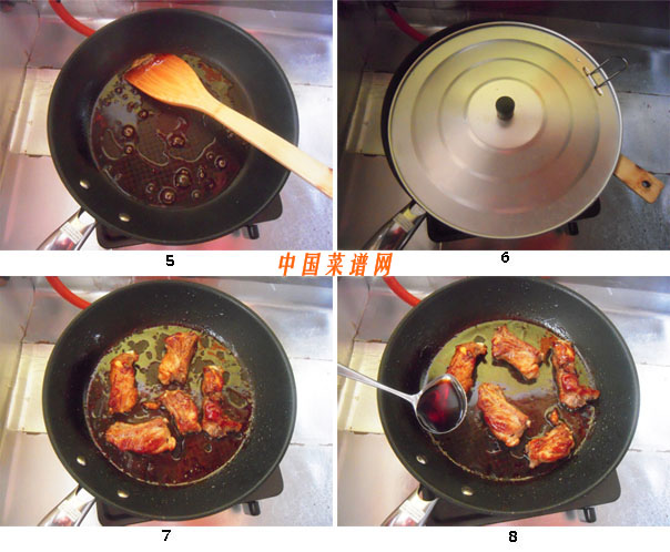 3.炒糖色不崩油、不燙手的小訣竅:待油面由冒大泡轉(zhuǎn)為濃密小泡時即刻關(guān)火,下入排骨,再迅速地蓋上鍋蓋,大約30、40秒后再重新開中小火,翻炒排骨至上糖色。這樣就再也不用擔(dān)心崩熱油和燙傷手指了!