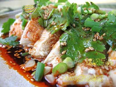 ??? 將醬油,鹽,糖,醋混合兩勺紅油,攪拌均勻后,淋在雞肉上面。根據(jù)你自己的口味,可以配一些香菜,香蔥,芝麻。如果沒有,不加也行!