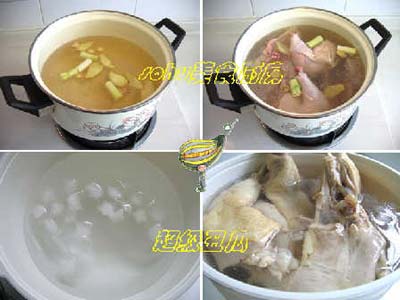 ??? 煮好的雞要立刻放到?jīng)鲩_水里,最好是冰開水里激一下。這樣皮質(zhì)細(xì)膩緊滑,脆脆的不容易散爛。