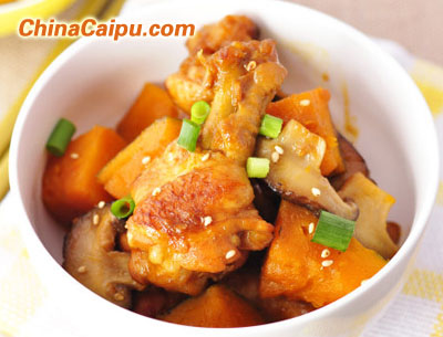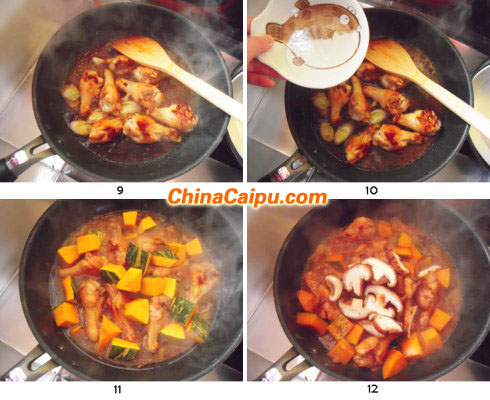 11.大約15分鐘以后,倒入切好的南瓜塊兒。