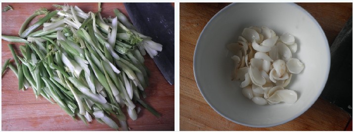 1,西芹去葉,洗凈,斜刀切段兒,(