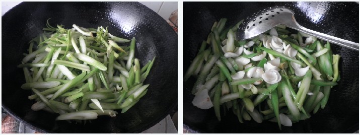 4,炒鍋入油,倒入西芹翻炒均勻,加百合,撒適合鹽,炒勻出鍋裝盤,撒上提前炸好的腰果即可上桌。