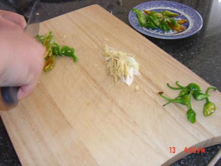 配料:尖椒(越辣越好)適量,蔥(蔥花).姜一點(diǎn)(切姜絲),豬肉一小塊(見下圖)