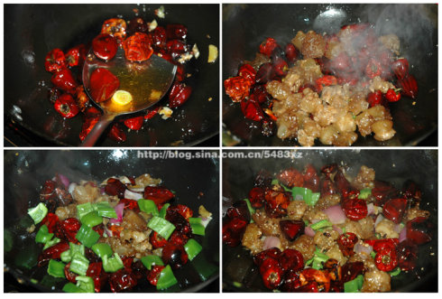 材料:鹵水牛筋,干紅辣椒,青椒,洋蔥