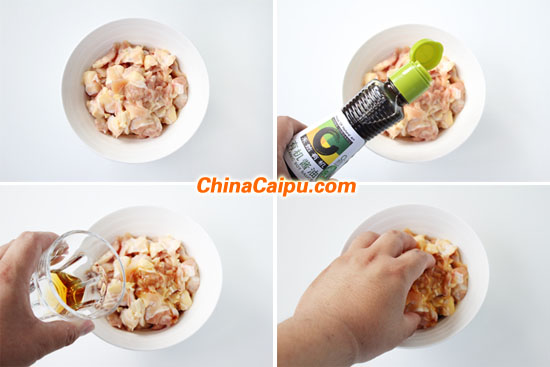 1.雞脆骨洗凈,加入少許醬油與料酒抓勻腌制20分鐘。