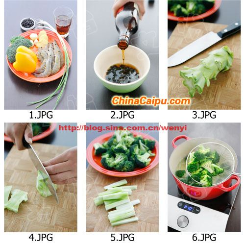 原料:新鮮大蝦500克 西蘭花1棵 黃色彩椒半個(gè) 大蒜3瓣 姜3片 干豆豉30克 青蔥1根