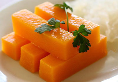 3. 南瓜去皮去籽切成等長的長方體