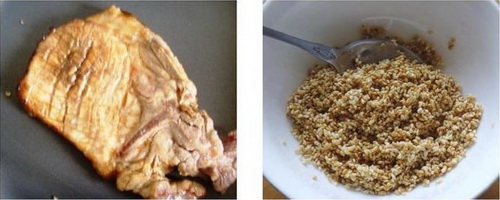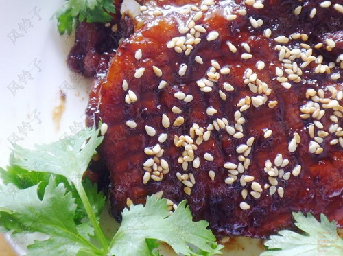 原料:大排骨4個,蜂蜜,白芝麻少許。