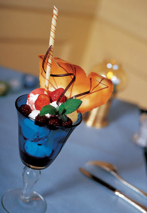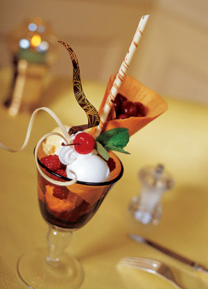 ????? 健康提示:冰淇淋可任選個人喜愛的口味,適當(dāng)講究色彩的對比;可可粉可以用巧克力粉或糖粉替代。