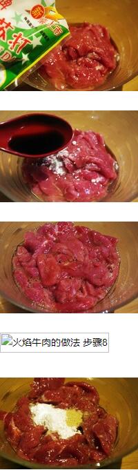 火焰牛肉的材料:牛肉250克,蒜,香菜,蘇打粉半勺,料酒6勺,蛋清1個,淀粉2勺,胡椒半勺,生抽1勺,鹽,小米辣,剁椒,美食網(wǎng)