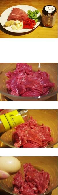 1 牛肉洗凈控干水分,逆紋切薄片,放入碗中加料酒5-6勺,雞蛋清一個,小蘇打小半勺,生抽1勺用筷子攪勻后腌制半小時。