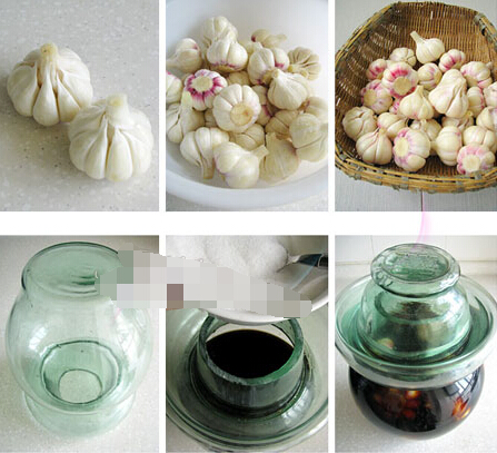 3 倒入陳醋和香醋,再加入白糖,用干凈無油的筷子攪拌,直至糖化掉;將晾干水分的蒜頭放進(jìn)罐子中,蓋上蓋子,在瓶口水槽中倒入水,用以隔絕空氣,防止細(xì)菌進(jìn)入。大概每隔幾天在水槽里補(bǔ)一次水,以免水分蒸發(fā)掉了。